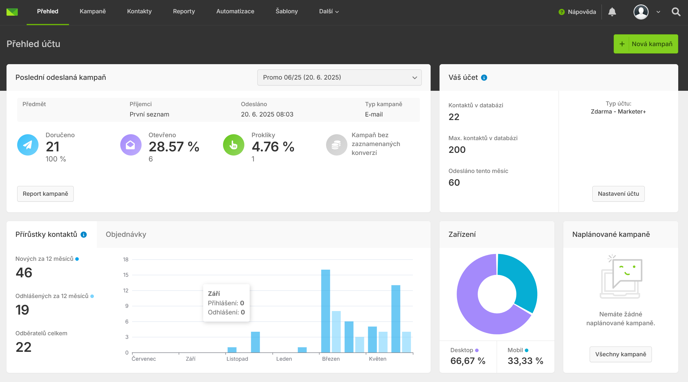 Každá odeslaná kampaň je doprovázena detailním reportem: